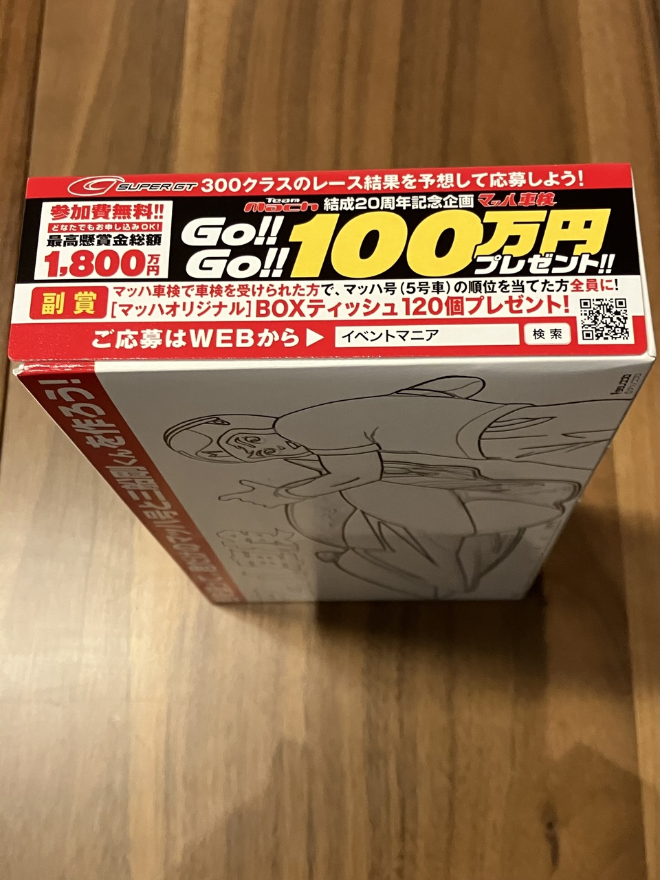 さらに、マッハ車検で車検を受けた事がある方で、マッハ号の順位を当てるとBOXティッシュ120個をプレゼントします!