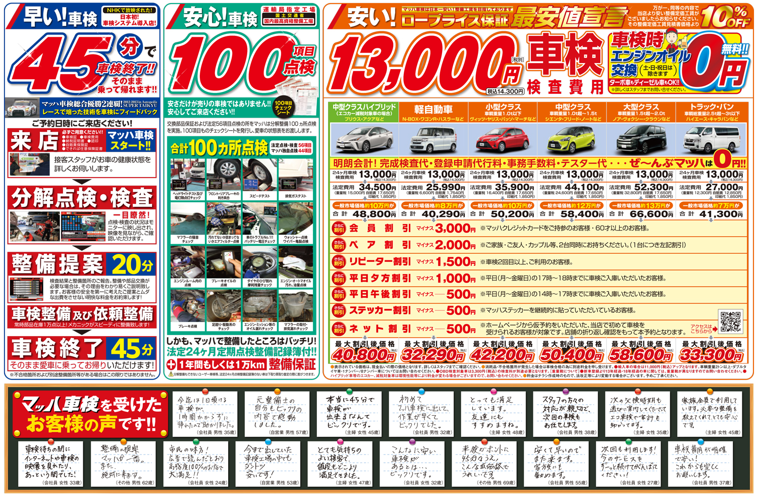 明朗会計!完成検査代・登録申請代行料・事務手数料・テスター代・・・・ぜ〜んぶマッハは0円 |