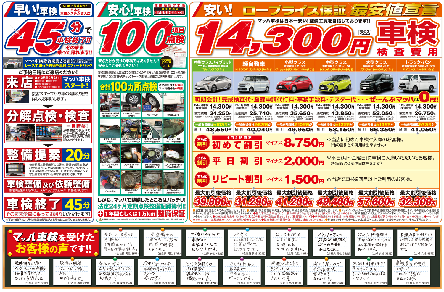 明朗会計!完成検査代・登録申請代行料・事務手数料・テスター代・・・・ぜ〜んぶマッハは0円 |